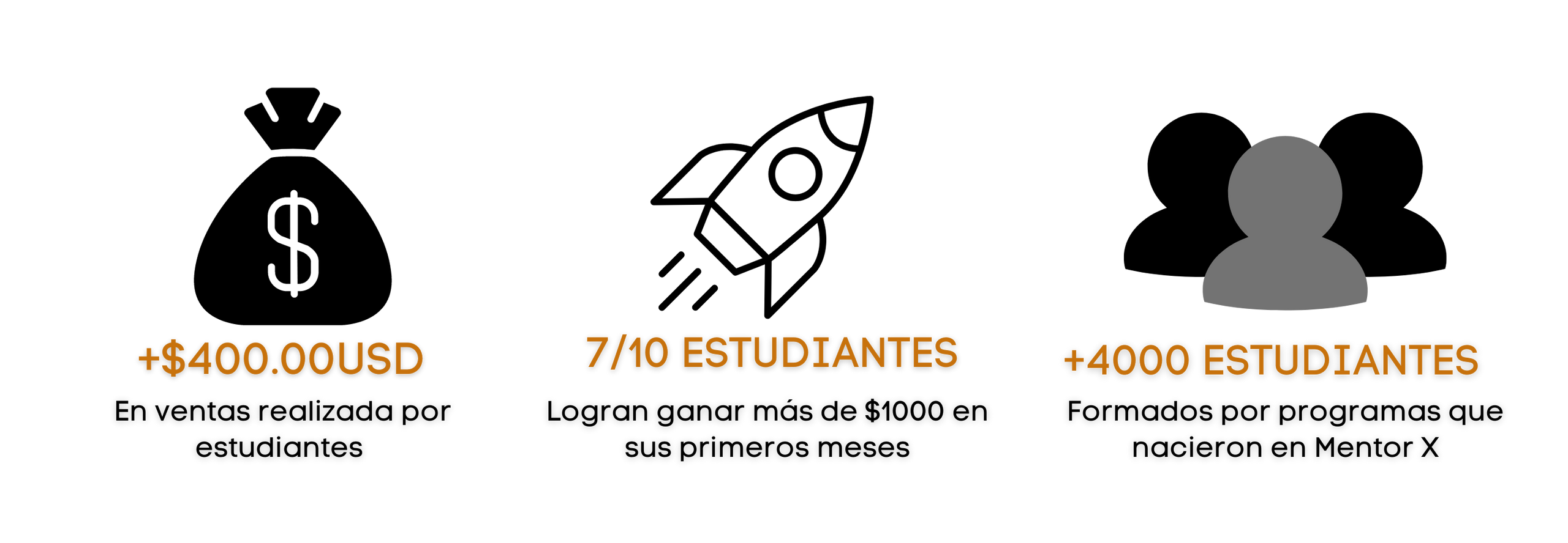 Con esta comunidad tendrá el sistema de apoyo necesario para poder crear un negocio que le permita facturar y escalar sus ingresos a más de $1000 dólares todos los meses.