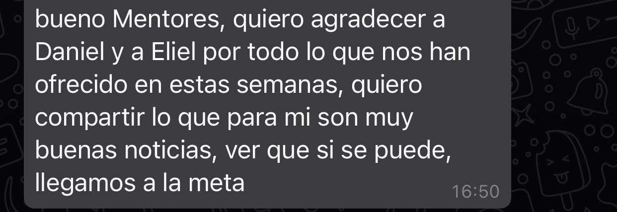 Son sesiones cada 15 días donde tendrá un mentor especializado que podrá darle retroalimentación y guía para mantenerse en continua mejora.